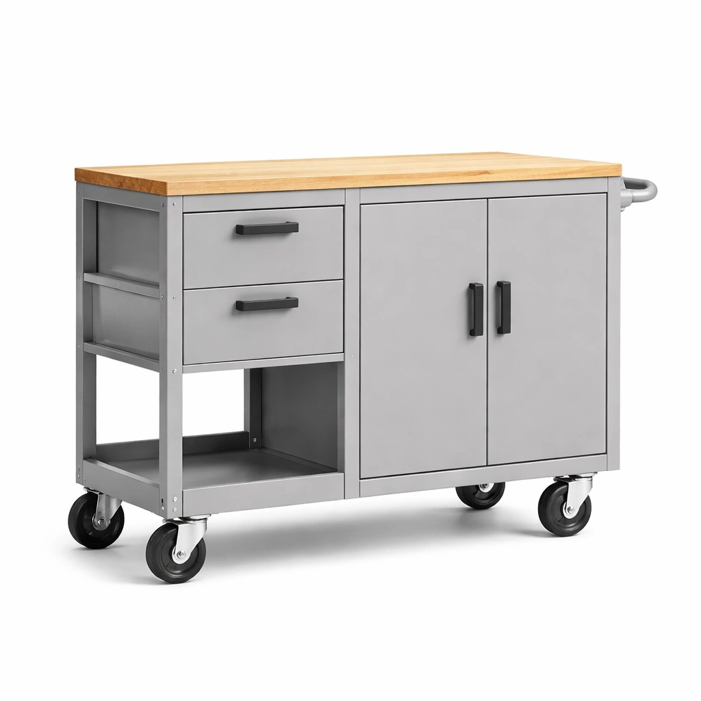 Werkzeugwagen metall kiefernholzplatte grau mit schubladen