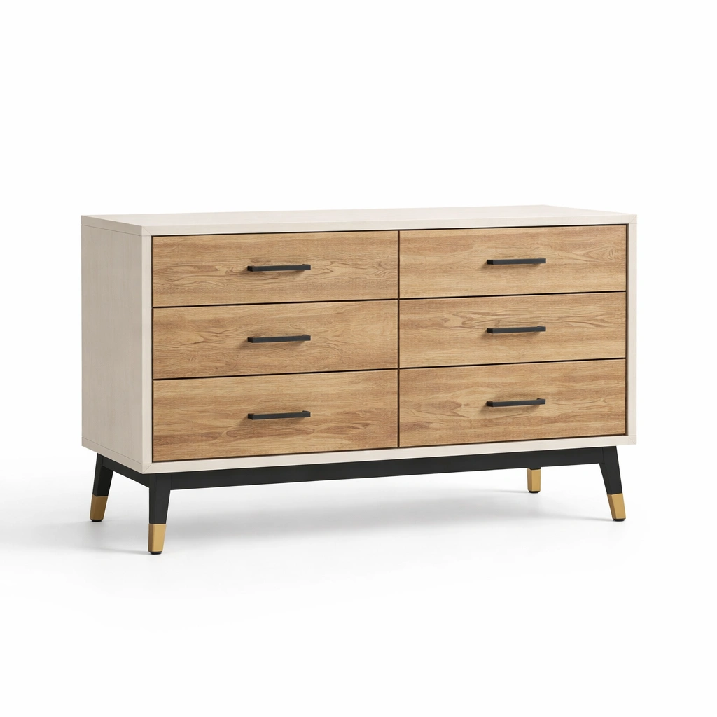 Kommode mdf und stahl holzoptik schwarz 6 schubladen