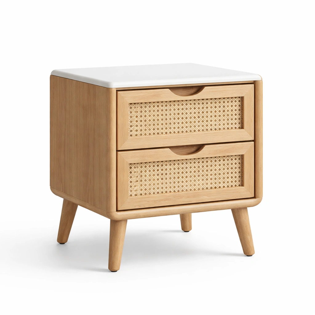 Nachttisch eichenholz rattan beige weiß 2 schubladen 40x45x60cm